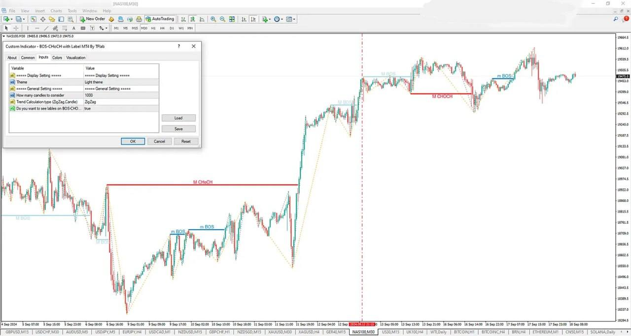 ویژگیهای کلیدی اندیکاتور BOS–CHoCH برای MT4