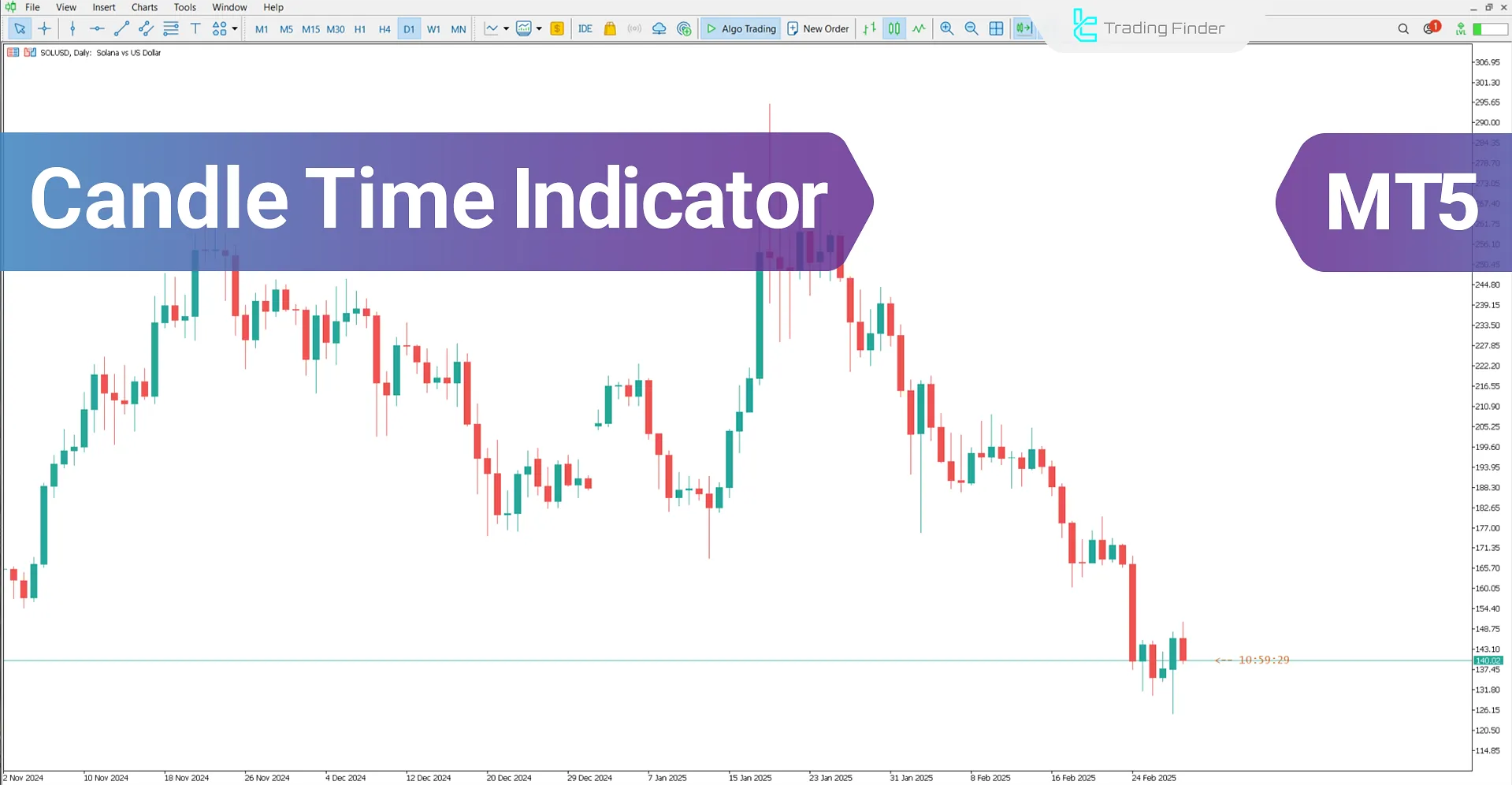 اندیکاتور کندل تایمر برای متاتریدر 5 (Candle Timer Indicator MT5) مقدمه زمان در بازارهای مالی اهمیت بسیار زیادی دارد. هر کندل روی نمودار نشاندهنده یک بازه زمانی مشخص است (مثلاً ۱ دقیقه، ۵ دقیقه، ۱ ساعت یا ۱ روز). یکی از نیازهای تریدرها این است که بدانند چه مقدار زمان تا بسته شدن کندل فعلی باقی مانده است. اندیکاتور کندل تایمر (Candle Timer) برای متاتریدر 5 دقیقاً همین کار را انجام میدهد. این ابزار یک شمارشگر زمان روی نمودار قرار میدهد و لحظه به لحظه نشان میدهد تا بسته شدن کندل جاری چقدر مانده است.